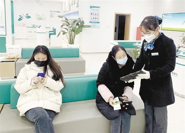 图为12月29日,农行周口分行营业部工作人员指导客户办理业务。