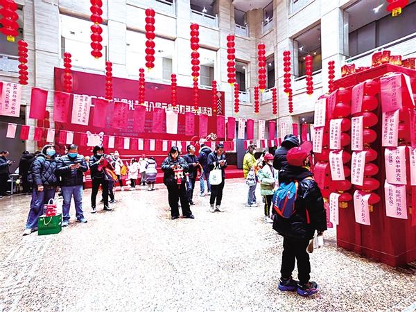 “梅花映雪挂灯笼,福字生金万户红。”红红的灯笼象征着团圆,寄托了美好的愿景,做花灯活动深受孩子们的欢迎,“我是专门带着两个孩子来参加活动的,想让孩子从小就能了解中国的传统文化。”市民李女士说。