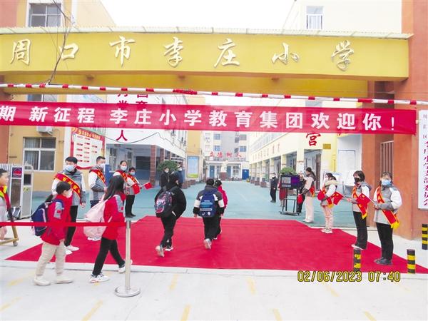 2月6日,周口市七一路第一小学校长万生带领全体班子成员提前到岗,同特警、交警一起维持学校门口的秩序,以饱满的热情迎接全体师生归来。当天上午,各班以“朝气蓬勃新学期 踔厉奋发启新篇”为主题,开展了多彩扎实的开学第一课教育。