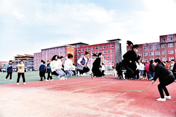 近日,淮阳中学举行跳大绳比赛。为展现新时代女性的风采、培养团结合作的团队精神、增强女性的身心健康,淮阳区多个单位举行了“三八”国际劳动妇女节趣味运动会。 记者 侯俊豫 通讯员 贾晗 摄