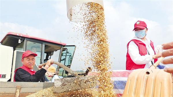 5月31日上午,西华县迟营镇顺河村多台收割机同时作业,标志着该县103万亩小麦开镰收割。为确保夏粮及时收获、应收尽收,该县农机部门投入3300多台联合收割机开展抢收作业。②18 记者 张猛 摄
