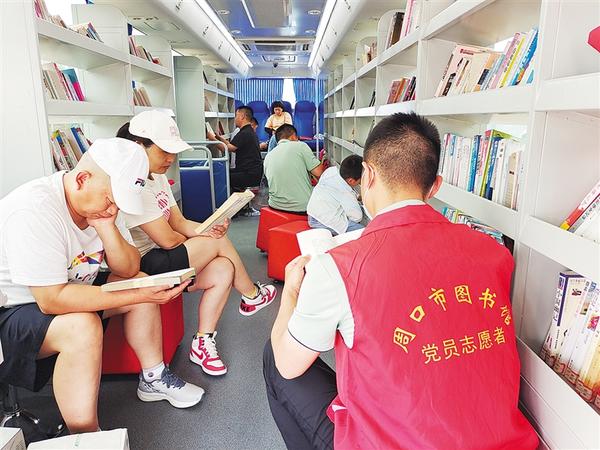 6月7日,考生家长在市图书馆流动图书车上浏览图书。当日,由周口市文化广电和旅游局联合周口市图书馆爱心助考志愿服务活动在文昌中学考点开展。市图书馆志愿者为考生准备了考试用品,此外,市图书馆还准备了矿泉水、口罩、爱心椅子等供家长和考生使用。②16记者 黄佳 摄
