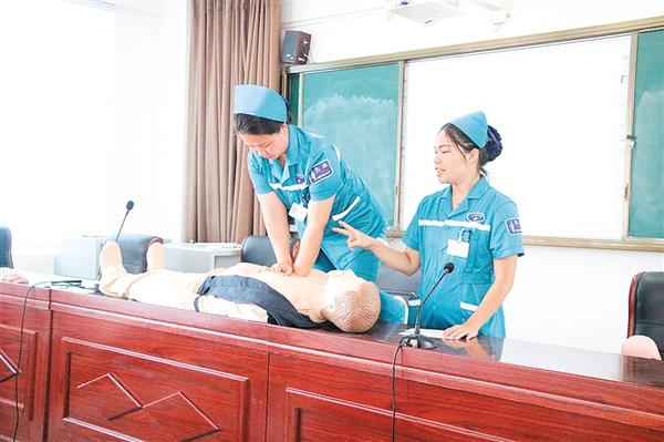 为提高教师的健康意识和保健能力,9月6日,川汇区中医院组织该院医护人员走进周口市第七初级中学,开展健康知识专题讲座。医护人员为该校教职工介绍了教育行业常见职业病的种类、病因、症状和治疗方法,并以“讲解+互动”的形式介绍了心肺复苏、成人海姆立克急救法、婴儿海姆立克急救法的操作流程。刘伟 摄
