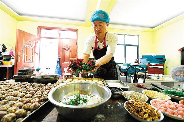 五仁月饼是周口的招牌月饼,主料为花生仁、核桃仁、瓜子仁、芝麻、桔皮、白糖等,各家因用料各异,味道各不相同。韩记月饼注重传统工艺,从选料、配馅、手工制作到入炉烘焙,格外考究。①6