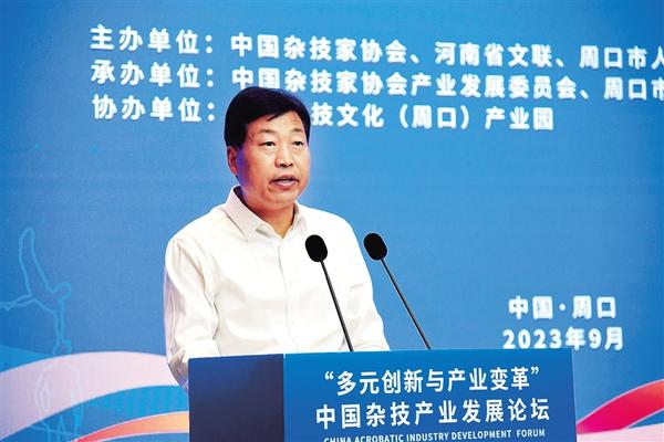 本报讯 9月23日,以“多元创新与产业变革”为主题的2023中国杂技产业发展论坛在周口举行,来自全国杂技领域的专家学者欢聚一堂,共话杂技产业发展盛事。中国文联副主席、中国杂技家协会主席边发吉,全国政协委员、中国杂技家协会分党组书记、驻会副主席唐延海,文化和旅游部产业发展司副司长马力,河南省文联党组书记方启雄,市委副书记、市长吉建军出席开幕式。市委常委、宣传部长王少青主持开幕式。