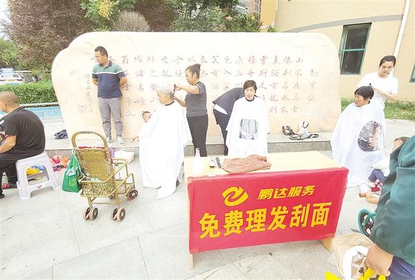 □记者 姬慧洋 文/图 本报讯 测量血压、免费剪发、缝补衣服……9月27日,记者从市城乡一体化示范区文昌街道获悉,该街道在“双节”来临之际,组织开展文明志愿服务进社区活动,深受广大居民好评。 在景园社区广场,社区干部和社区物业、社区卫生服务站工作人员组成了爱心便民志愿服务队,把医疗、美发等服务送到居民身边。 一张围布、一把剪刀、一把梳子……一个简易理发摊开始“营业”了。理发师热情耐心地与居民沟通,了解居民诉求,设计适合的发型。现场条件虽然简陋,但丝毫没有影响志愿者的服务质量。“特别感谢这些志愿者,他们来到家门口为我们理发,我觉得这个活动特别好。”居民王大爷说。②18 志愿者为居民理发。