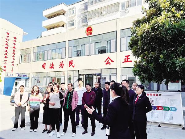 城关人民法庭院内,在工作人员的引导下,大家参观了防范打击非法集资、反诈宣传知识等展板,之后又参观了立案室、审判庭、互联网无人律所、弱势群体诉讼指导办公室等场所,通过旁听庭审、听取讲解、实地参观的方式,全面了解法院立案、审判等相关工作流程,亲身感受法院审判工作。