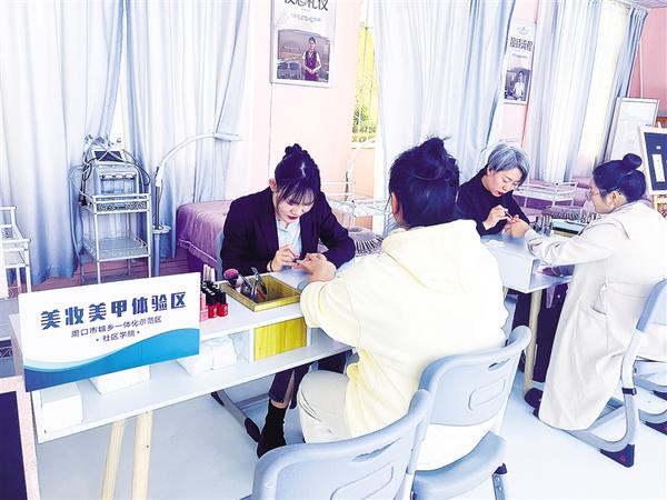 “学院定期举办的美容美甲化妆培训课让我受益匪浅。我是一名宝妈,每次的‘社区周六课堂’我都坚持来学习,以提高自己,为今后就业、创业奠定基础。”社区居民张丽霞说。