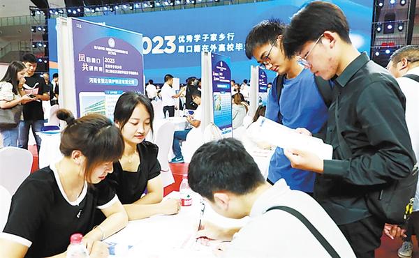 前段时间,周口市体育中心体育馆里人头攒动,第六届中国·河南招才引智创新发展大会周口专场活动——“凤归周口、共创未来”周口籍在外高校毕业生专场招聘会在这里举行。150多家重点企事业单位、近5000个工作岗位“虚位以待”,近万名高校毕业生陆续进场求职。在现场负责招聘工作的河南阿尔本制衣有限公司招聘员表示,通过面对面的沟通,他感受到了大学生饱满的求职热情,相信企业能顺利选出所需人才,他们也尽最大努力为高校毕业生提供成长成才的平台,助力他们就业。