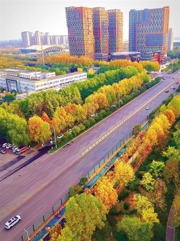 11月27日,初冬时节,周口中心城区绿化带种植的法桐树、银杏树等在阳光的照射下犹如披上了“黄金甲”,让人赏心悦目。
