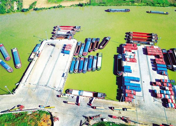 11月30日,周口港码头货船整装待发。周口港是河南省规模最大的现代化综合港和集装箱港,坐拥沙颍河通江达海黄金水道,是国家规划的91个主要港口之一。 记者 沈湛 摄