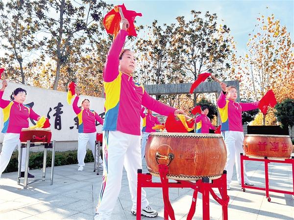 12月8日下午,周口姐妹鼓舞队成员像往日一样齐聚在中心城区廉洁文化主题游园进行表演,她们饱满的精神状态、矫健的身姿、整齐划一的动作吸引了多位市民驻足观看。据了解,周口姐妹鼓舞队于今年夏季成立,成员多为退休职工。记者 何晴 摄