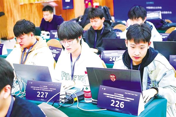 近日,周口职业技术学院代表队队员在比赛中。2023年第四届全国电信和互联网行业职业技能竞赛(人工智能训练师)暨第六届全国大学生大数据技能竞赛全国总决赛不久前在郑州闭幕。周口职业技术学院代表队队员孙梦杰、李豪宇、李金普以446分的成绩获得本次竞赛职教组特等奖。此次竞赛旨在加快培养大批高素质人工智能与大数据分析劳动者和高技能人才。 记者 刘华志 摄