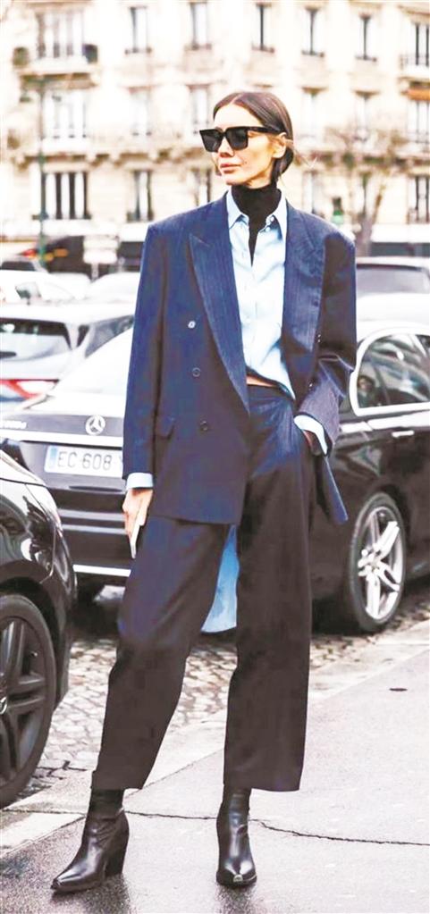 惯用穿法是“外松内紧”“外长内短”,想给造型添些新意,可尝试“外紧内松”“外短内长”的穿搭思路。“外紧内松”需要注意内搭的厚度不能太厚,外搭不能太过于紧身,要张弛有度,不仅可显瘦、显腰身,还能让整体造型看起来更有层次感。而“外短内长”的重点在于用适当“留白”来突出细节,搭配时尽可能留有清晰的腰线,即衣服与衣服之间的色彩对比要强,才能在凸显层次的同时,不破坏身材的比例。