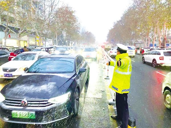 本报讯 12月15日,气温骤降,受强冷空气影响,周口多地普降大雪,中心城区多路段出现结冰现象。为保障雨雪冰冻等恶劣天气下市民的出行安全,全市公安交警部门及时启动应急预案,采取有力措施,坚决确保在恶劣天气下群众平安出行、道路畅通。