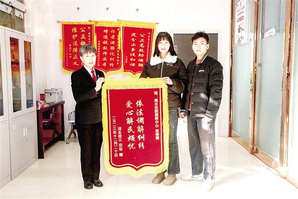 本报讯 12月21日上午,田某将一面写有“依法调解纠纷 爱心解民烦忧”字样的锦旗送到了商水县人民法院诉前调解中心首席法律咨询专家袁幸福的手中。
