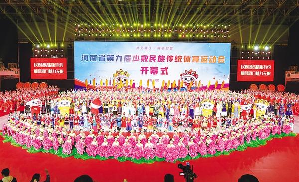 2023年4月22日晚,河南省第九届少数民族传统体育运动会在周口市体育中心体育馆开幕。