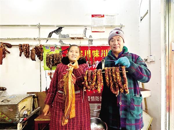 “每年一进入腊月,我和老伴都会来他家灌香肠。最近猪肉便宜,我们灌了整整54斤香肠,一半是微辣的,一半是广式风味的,还在这里加工了20斤腊肉,留着过年等孩子们回家了再一块吃。”市民韩女士笑着说。据店主邱宗鑫介绍,每年的腊月初八到腊月二十一,是市民灌香肠的高峰期,店里平均每天能加工300斤至400斤腊制品,忙的时候能加工700斤到800斤。为更好满足顾客需求,他们店还免费提供晾晒服务。“我们夫妻是从四川泸州来的,每天早上7点多开门,晚上没人了才关门。我们在周口干灌香肠、腌腊肉生意已经10年了,用的拌料都是从四川老家配好后带过来的,保证让顾客吃上正宗的四川香肠。”邱宗鑫说。