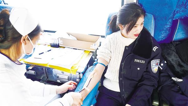 1月10日,西华县人民法院司法警察大队开展了义务献血公益活动。通讯员 刘红亚 孙云云 摄