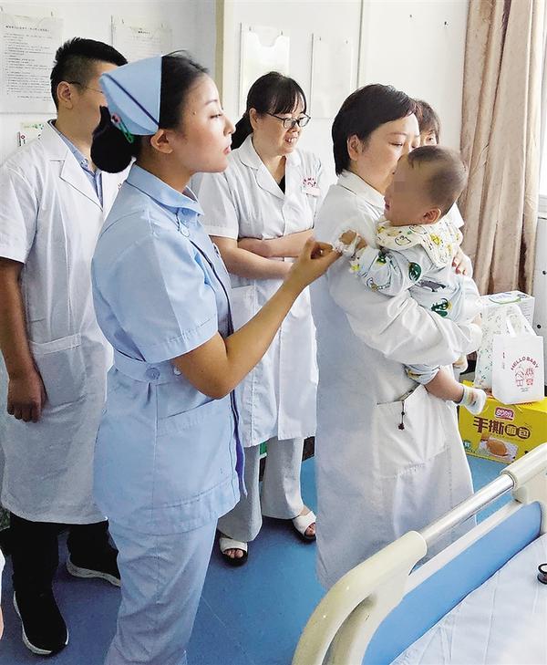 查房时,王芳抱着小凯说:“叫奶奶、叫奶奶。”小凯高兴得手舞足蹈。“我虽然看不见你们,但我能感受到你们对孩子的关爱。非常感谢市妇幼保健院医护人员对我们的帮助,将来我一定将小凯培养成才,为社会多作贡献。”小凯的父亲激动地说道。③2