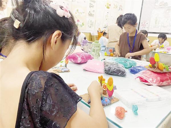 老师为小记者讲解如何创作“立秋”黏土。 王泽铭 摄