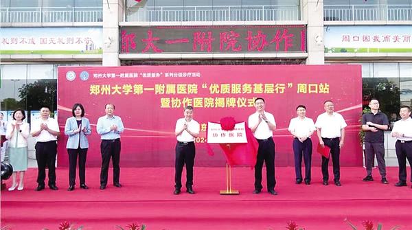 9月28日,郑州大学第一附属医院(简称郑大一附院)“优质服务基层行”周口站暨郑大一附院周口东新医院协作医院揭牌仪式在周口东新医院举行。揭牌仪式现场,周口东新医院院长王淑华说,医院将以此次协作为契机,搭建技术、管理、文化融合平台,建立常态化交流协作机制,力争在专科建设、人才培养、服务质量等方面取得新突破。