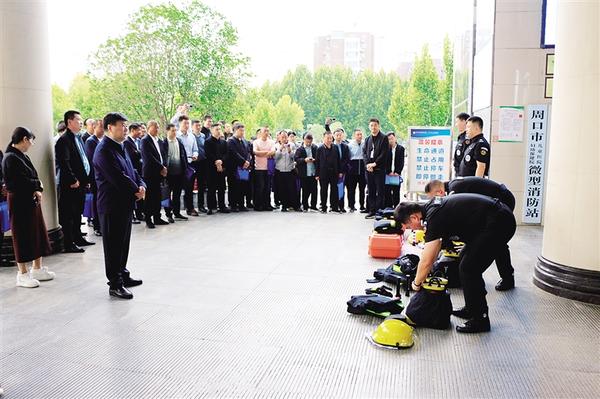 与会人员观摩周口市妇幼保健院消防团队建设情况。为进一步贯彻落实安全生产治本攻坚三年行动部署要求,提升全市卫生健康系统安全生产工作能力,10月18日,周口市卫生健康系统安全生产暨消防工作培训会在周口市妇幼保健院召开。会议要求,全市卫生健康系统要坚决落实安全生产管理责任,确保安全生产暨消防工作取得实效。记者 李鹤 摄