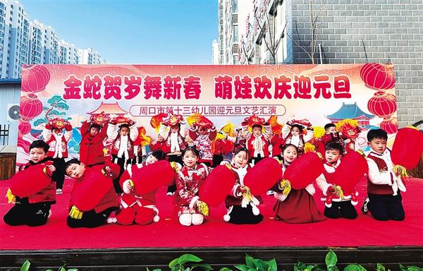 连日来,我市各学校、幼儿园纷纷开展趣味运动会、书画比赛、主题班会、文艺汇演等活动,欢乐喜庆迎接新年,让孩子们在欢乐中收获知识与成长。图为周口市第十三幼儿园的小朋友在表演精彩的舞蹈节目。记者 王吉城 摄