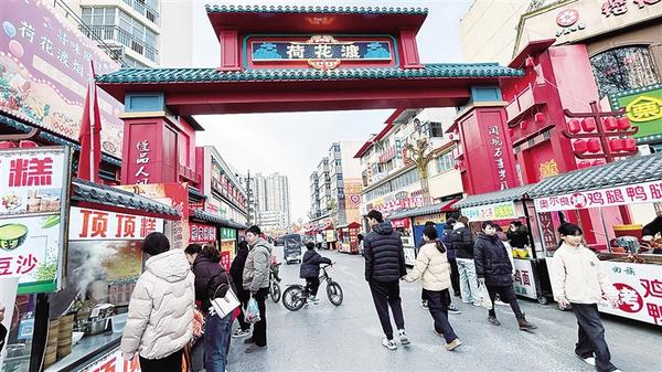 “老板,再来一碗。”杨三胡辣汤店内,已有食客将碗内的胡辣汤一饮而尽;网红小吃“顶顶糕”摊前挤满了尝鲜的年轻人;西大街铁锅绿豆凉粉摊前,食客们正等着品尝锅中“滋滋”冒着热气的炒凉粉……2月10日,记者走进“荷花渡”,一路上,店主的吆喝声、食客的交谈声此起彼伏,好不热闹。