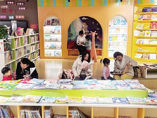 2月12日,几名家长带孩子看书。新学期开学前,我市中心城区一家书店内热闹非凡,不少读者在这里看书、购书,为新学期做好准备。