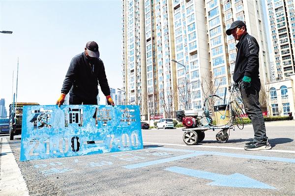 3月6日,工作人员在庆丰东路泰和家园门前规划夜间停车位。为缓解居民夜间停车难题,近日,我市公安部门在中心城区部分路段规划了夜间停车位。夜间停车位在21时至次日7时免费开放,其他时段禁止停放。