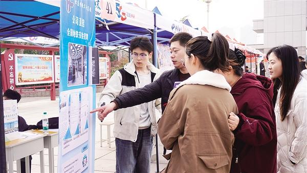 3月12日,用人单位代表向毕业生介绍岗位情况。当日,河南科技职业大学举办2025届毕业生春季双选会,吸引了近百家企业参加,提供涵盖信息技术、智能制造、文化传媒等领域的6000多个就业岗位,不少毕业生与用人单位现场达成初步就业意向。 记者 王吉城 摄