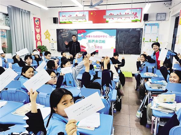 本报讯 鸿雁传书,纸短情长。近日,周口市第十九初级中学七(23)班的教室里洋溢着欢乐的氛围,该班学生收到了来自新疆伊吾县淖毛湖镇中学学生的回信。这些信件承载着边疆学生的深厚情谊,为两地青少年搭建起了一座友谊的桥梁。