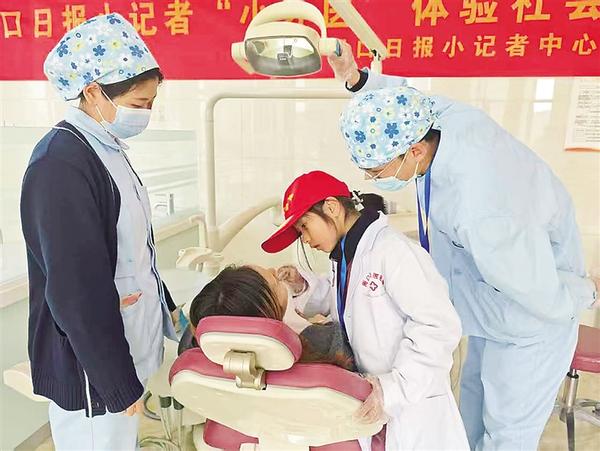 小记者体验当“小牙医”。3月30日,100余名周口报业小记者走进周口口腔医院,在专业医生的指导下,学习口腔知识,感受牙医工作,增强口腔保健意识。常晶晶 摄