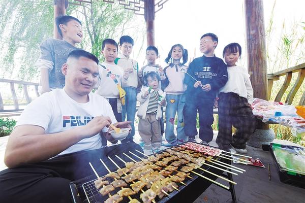 4月6日上午,孩子们在建业运河古镇等着吃烧烤。清明假期,建业运河古镇游人如织,他们骑车览春色、吃烧烤、逛古镇,以多种方式度过小长假。记者 梁照曾 摄