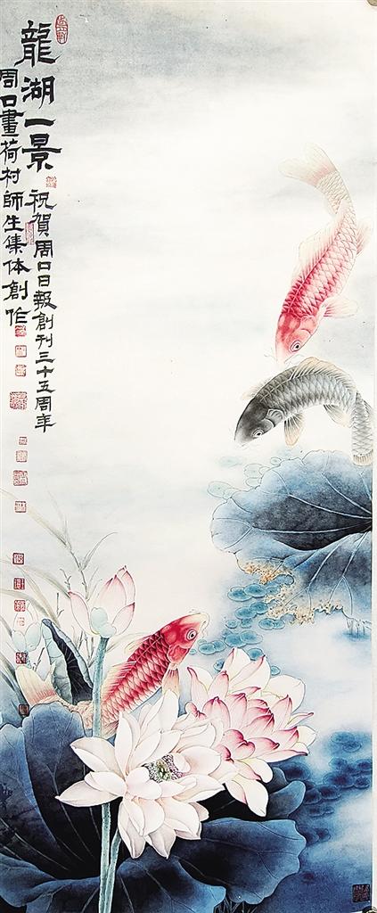 近日,淮阳区王店街道王楼“画荷村”的师生创作一幅饱含深意的手绘作品《龙湖一景》,为《周口日报》创刊35周年送上诚挚祝福。这幅由皮伟、张彬、皮精军、朱琳、朱艳、朱慧霞、王雪娟、陈玉环、谢宜静等人集体创作的艺术作品,以生动的笔触展现了淮阳龙湖的生态之美,传递了当地群众对《周口日报》的深厚情谊。记者 刘俊涛 摄