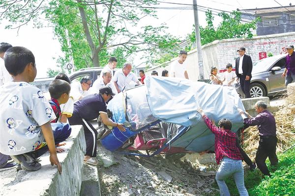 4月18日,众人合力将三轮车抬出路沟。当日12时左右,西华县田口乡李陈村东边的一处十字路口,一名村民骑着三轮车不慎从桥上栽入路沟,车上载有两个孩子。市文联三级调研员李哲、市民协主席杜忠义、西华县文联主席王鹏飞等人到田口乡开展民间文学田野调查工作,正好从此处经过,听到喊声后,他们急忙下车救援。最终在附近村民的帮助下,众人成功把大人和孩子救出,并将三轮车从沟底推上来,所幸大人、孩子皆平安无事。记者 梁照曾 摄
