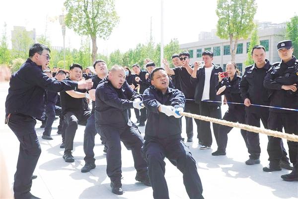 参赛队员进行拔河比赛。为丰富警营文化生活,提升队伍凝聚力、战斗力,展现新时代鹿邑公安民辅警健康向上、拼搏进取的精神风貌,4月16日至4月17日,鹿邑县公安局举办了2025年警体运动会。通讯员 苑磊 摄