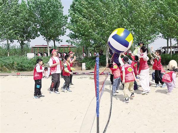 简短的开营仪式结束后,小营员满怀期待地踏上了这场生态研学之旅。首站,小营员来到了风景如画的白沙滩,以一场活力四射的排球赛点燃了现场气氛,欢声笑语中,他们不仅锻炼了身体,还在团队协作中学会了沟通与配合。沙滩寻宝活动更是让小营员兴奋不已。他们在沙粒间寻找“宝石”,在体验探索乐趣的过程中,激发了对大自然的好奇心和求知欲。