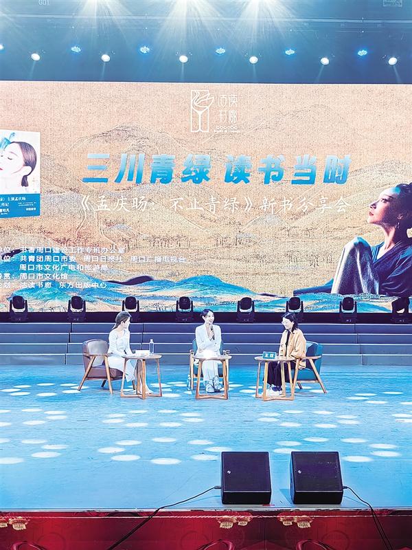 在新书分享环节,主持人与传主孟庆旸、作者王珏展开深度对话。作为多次登上央视春晚舞台的周口籍知名舞者,孟庆旸深情回顾从艺的心路历程,分享舞台背后不为人知的故事;作者王珏则详细讲述创作《不止青绿》的初衷与过程,解读作品背后的深刻内涵。互动交流环节,孟庆旸、王珏与现场读者围绕艺术成长、书籍内容等展开探讨,活动现场气氛热烈。