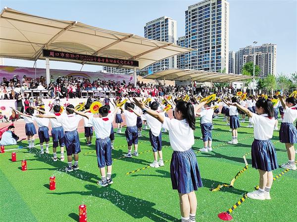4月29日上午,周口市实验学校学生沉浸在欢乐的氛围中,该校第四届文化艺术节正在举办。开幕式上,全校师生和家长代表共同欣赏了一场精彩纷呈的文艺盛宴。孩子们用热情洋溢的表演,展现了新时代少年的艺术才华与青春活力。王俊祥 摄