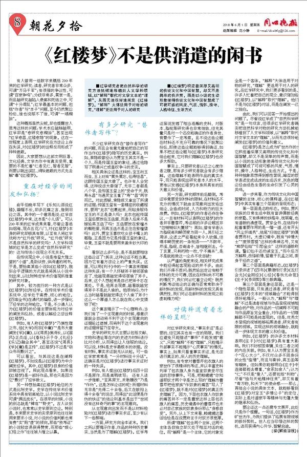 《红楼梦》不是供消遣的闲书