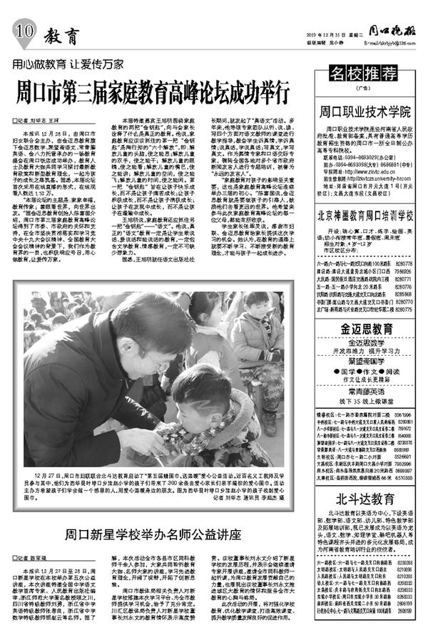 周口市第三届家庭教育高峰论坛成功举行