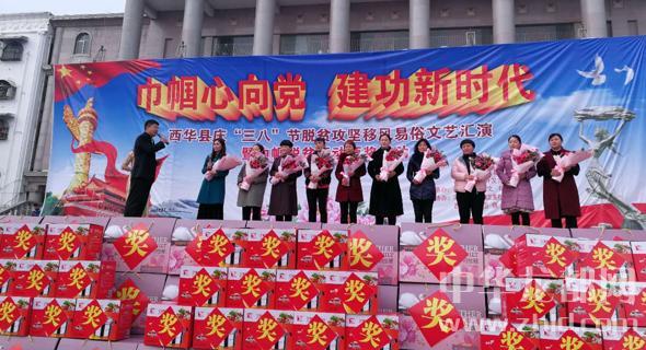 3月5日,西华县举办庆“三八”妇女节脱贫攻坚移风易俗文艺会演,对64名优秀女性和3个团体进行了表彰。记者姬慧洋摄