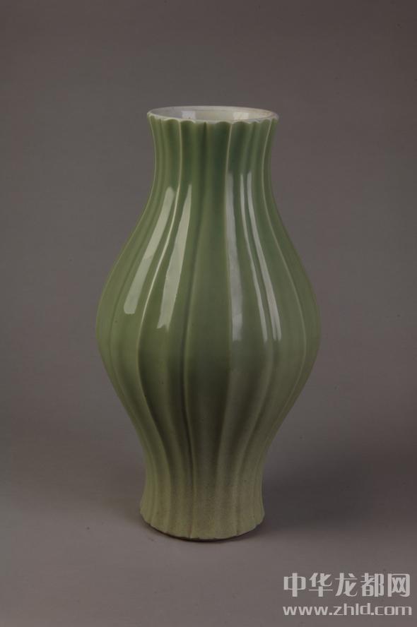 清龙泉窑瓜棱瓶,1985年,淮阳县粮食局北关粮店在盖门面楼挖地基时被发现,现藏于周口市博物馆。该器物高51.4厘米,口径15.2厘米,底径15.8厘米。体呈枣核状,敞口,束颈,鼓腹,腹下收束,假圈足外侈。呈刀削状,通体为瓜棱纹,施豆青釉,胎为乳白色。