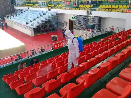 为确保疫情防控工作,保障第一届周商大会顺利进行,11月26日至27日,30余名工作人员对市体育馆内外、周商产品展示展览区进行全面消毒杀菌,包括座椅,走廊,栏杆,门把手等,确保周商大会消杀工作不留死角。周口日报·周道客户端见习记者 乔小纳 摄
