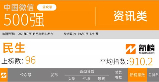在10月10日刚刚出炉的“2021年9月中国微信500强·新榜认证”的榜单结果里,周口晚报微信公众号再次进入500强榜单。今年的7月、8月,周口晚报微信连续入围新榜500强,本次入围标志着周口晚报微信蝉联新榜微信月榜500强三连冠、今年第四次入围“中国微信500强·新榜认证”。