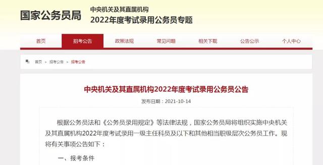 根据公务员法和《公务员录用规定》等法律法规,国家公务员局将组织实施中央机关及其直属机构2022年度考试录用一级主任科员及以下和其他相当职级层次公务员工作。现将有关事项公告如下: