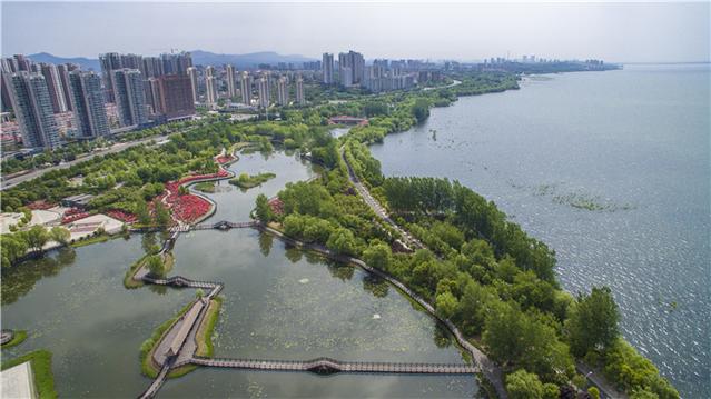 结合采煤塌陷地独特湿地环境,改造出占地面积约1350亩的白鹭洲国家城市湿地公园。该公园持续提档升级,垂柳依依、风景如画,成为广大市民休闲娱乐的重要场所。