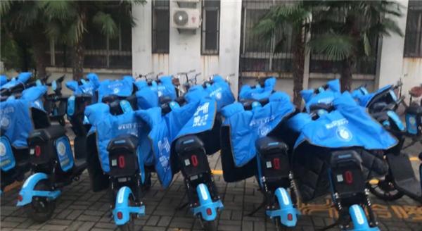 10月19日上午,记者在周口师范学院校园里看到,一些共享电动车披上了挡风被。这些蓝色挡风被印有“规范停车 停车入位”“周口师范学院专用”的字样,并带有哈啰单车logo,在校园里格外显眼。